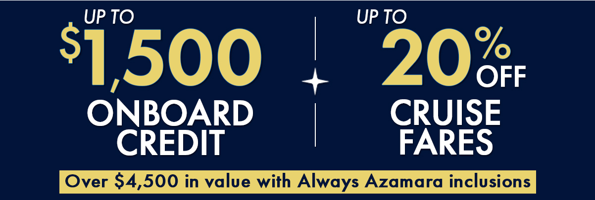Applies to new and individual bookings made between March 17, 2026 and March 31, 2026 (the “Booking Window”), and is available for select sailings departing between April 16, 2026 and May 20, 2027 (the “Sailing Window”). For the avoidance of doubt, the Sailing Window indicates that a sailing will take place within this range but may not necessarily begin or end on the specified dates. The Offer provides guests with up to 20% off the cruise fare. The discount amount is based on selected sailings at prevailing rates. The Offer is combinable with the current brand offer, Back-to-Back Benefits, Onboard Booking savings, Azamara Circle Quarterly Savings, and Covert Rates. Unless stated otherwise, the Flash Sale Offer is not combinable with Select Hosted and Amenity Programs, Last Minute Rares. The Offer is available only to guests in the U.S and Canada. Group bookings and Guaranteed Group Rates are not eligible, however, individual bookings transferred to a group will retain the discount. The Offer does not apply to third and fourth guests in a stateroom. Single occupancy guests paying 200% cruise fare are eligible for the full discount, while those paying less than 200% cruise fare are eligible for a prorated discount. Prices and offers are subject to availability and change without notice, capacity control, and may be withdrawn at any time. Void where prohibited. Refer to www.azamara.com for complete terms and conditions. Azamara Cruises reserves the right to correct any errors, inaccuracies, or omissions and to change or update fares, fees, and surcharges at any time without prior notice. After the Booking Window, the Offer will be removed from the booking if the guest cancels and reinstates the booking, applies a fare change, or changes the ship or sail date. Other changes to the booking may also result in the removal of the Offer. The Offer is subject to availability and may be withdrawn or changed without notice. For complete terms and conditions, visit Azamara.com/flashsale. ©2026 Azamara. Ships Registered to The Republic of the Marshall Islands.