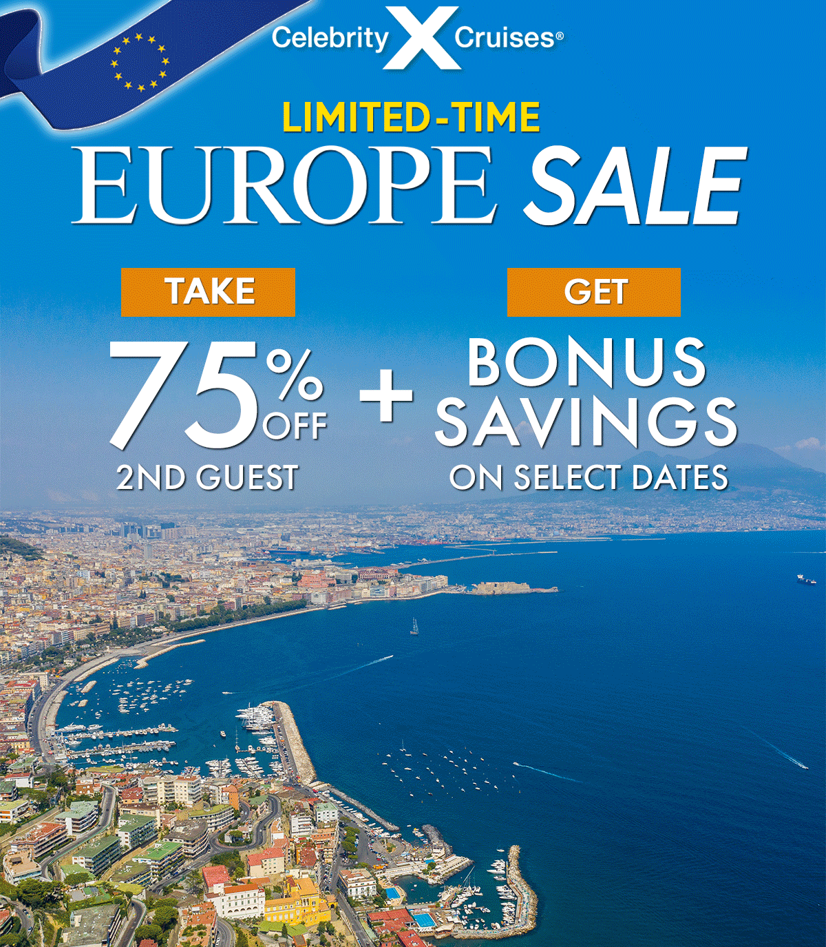 All offers are capacity controlled; availability varies by sailing, and eligible staterooms may sell out. All offers are non-transferable and applicable only to the Offer Cruise. Changes to booking may result in removal of offers. Prices and offers are subject to availability and change without notice, capacity controlled and may be withdrawn at any time. Refer to Cruise Ticket Contract for additional terms and conditions. Celebrity reserves the right to cancel the offer(s) at any time, correct any errors, inaccuracies, or omissions, and change or update fares, fees and surcharges at any time without prior notice. ©2025 Celebrity Cruises Inc. Ships’ registry: Malta and Ecuador.