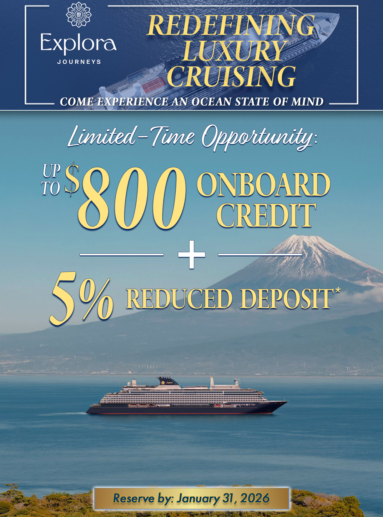 Valid for new bookings deposited and/or paid-in-full between January 14, 2026 - January 31, 2026.