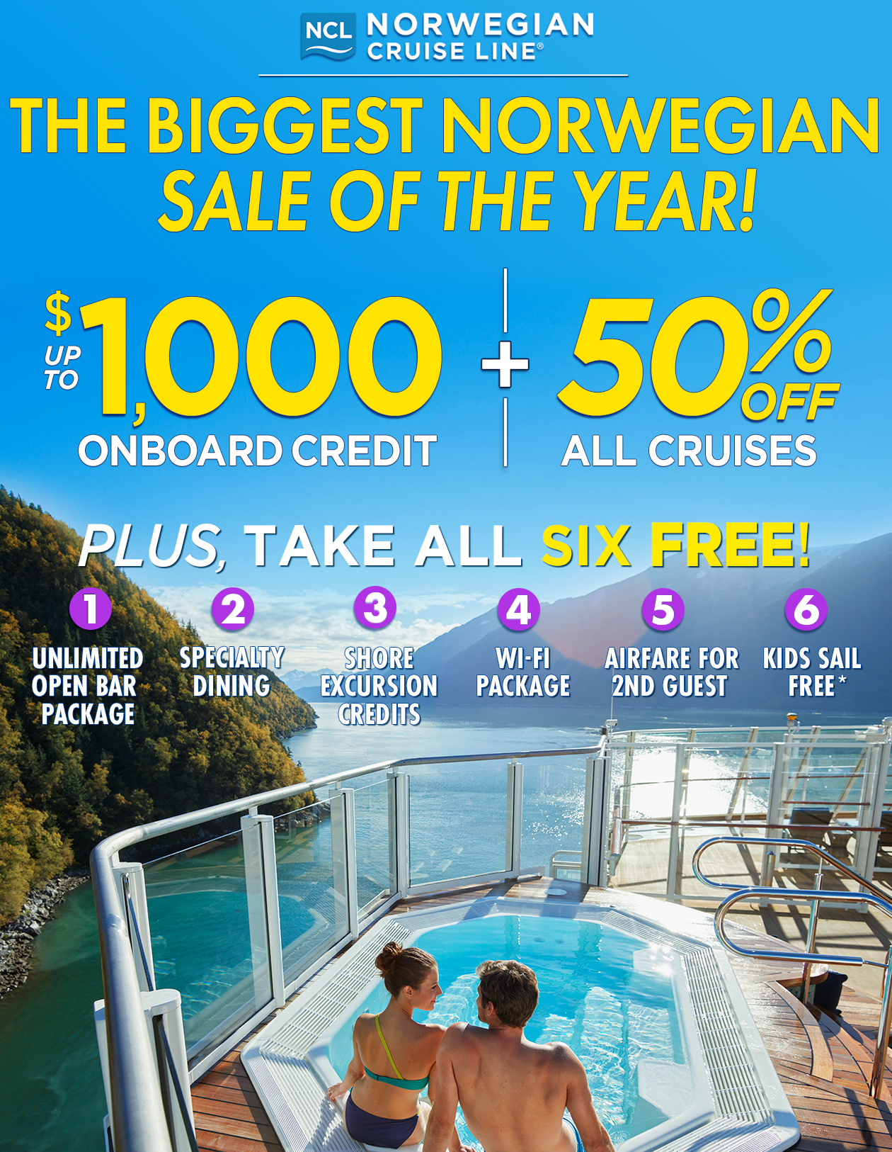 Offer and combinability with other promotional offers is subject to change at any time per Norwegian Cruise Line's discretion. Other restrictions may apply.