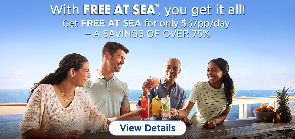 Guests are responsible for the cost of the Free at Sea™ Beverage and Soda Package prior to their cruise.
