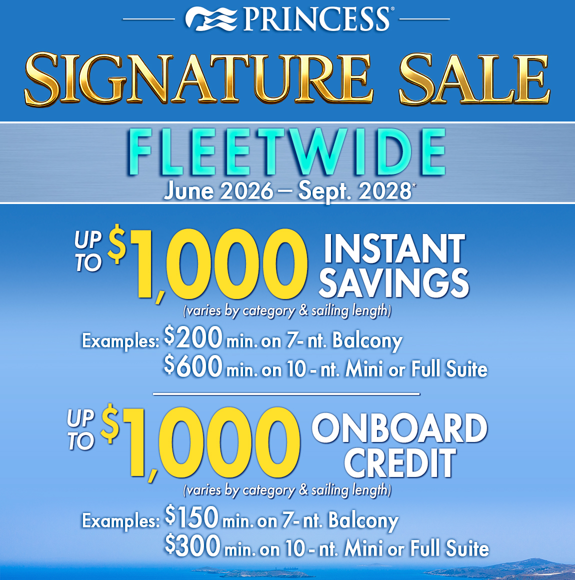 princess.com for terms, conditions, and details that apply to all bookings. *(excl. World Cruise)