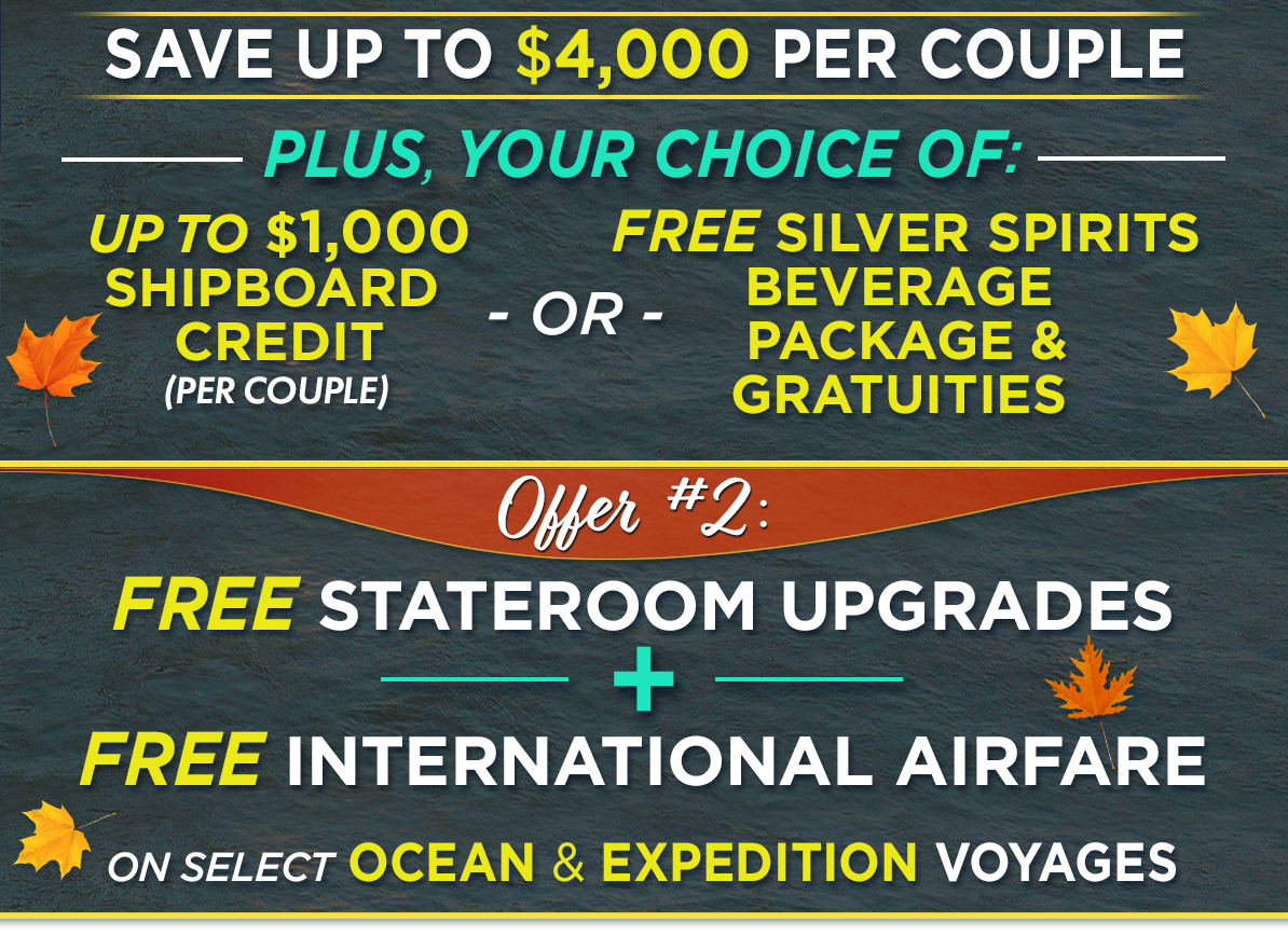 Fall Sale: Valid on bookings made October 1 – October 31, 2025. Offer expires October 31, 2025. Cruise fares, airfares and offers vary by departure date; for specific pricing, see our website